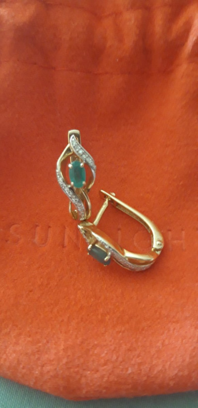 Серьги из желтого золота с изумрудами , камень крупный, очень хорошо смотрятся