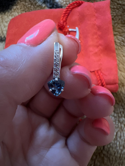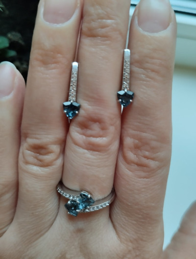 Очень довольна покупкой, серьги очень нежно смотрятся на ушке, при дневном свете все блестят и переливаются. Топаз темно синего цвета. Взяла сразу комплектом