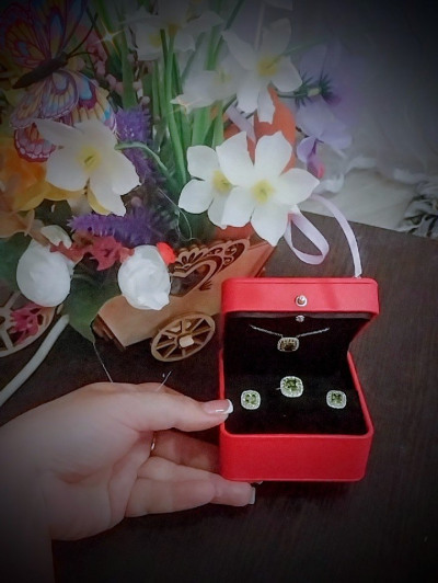 Сначала купила кольцо. Потом подвесок, и дополнила комплект сережками