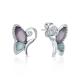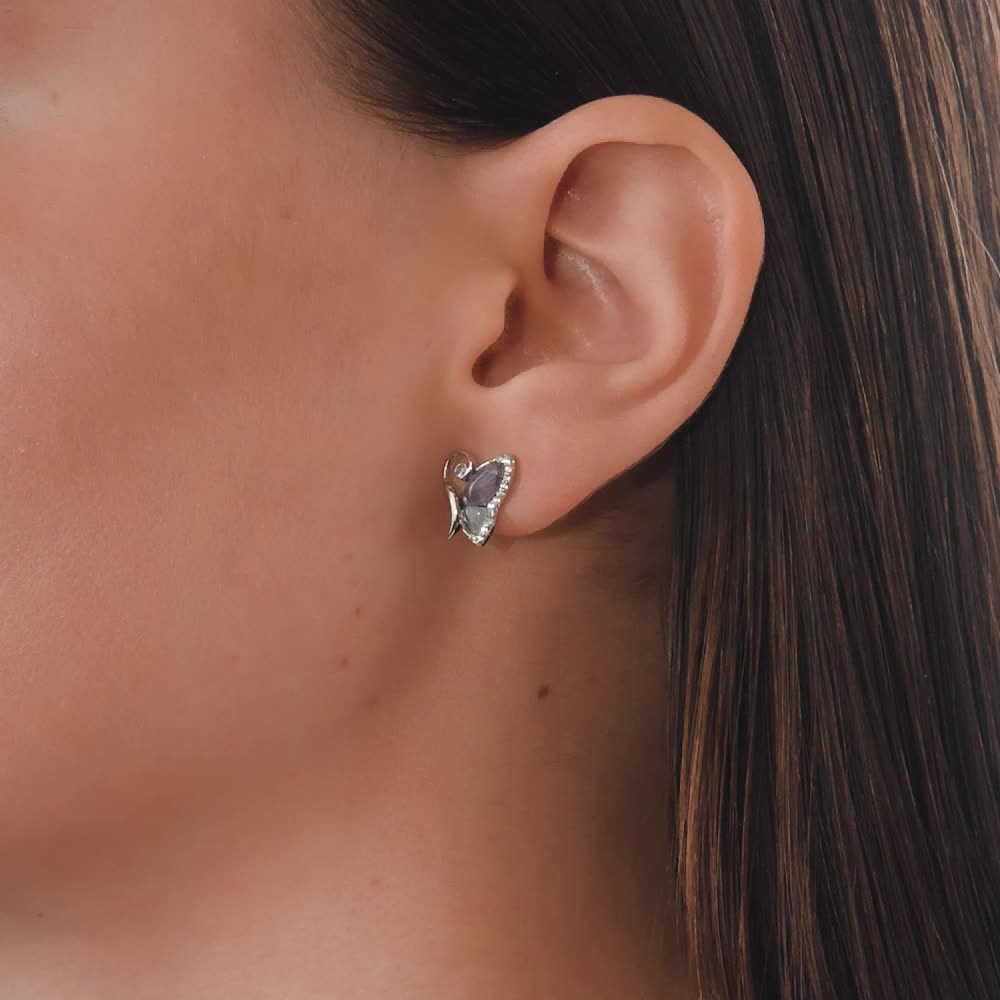 Серебряные серьги с фианитами и кошачьими глазами синтетическими