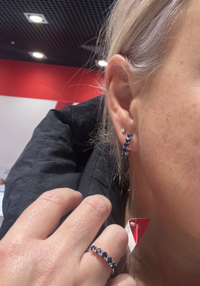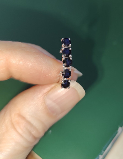 Очень красивые, тёмные сапфиры. Серьги удобные, не цепляются. Давно хотела сапфиры к моим синим глазам ) Спасибо.