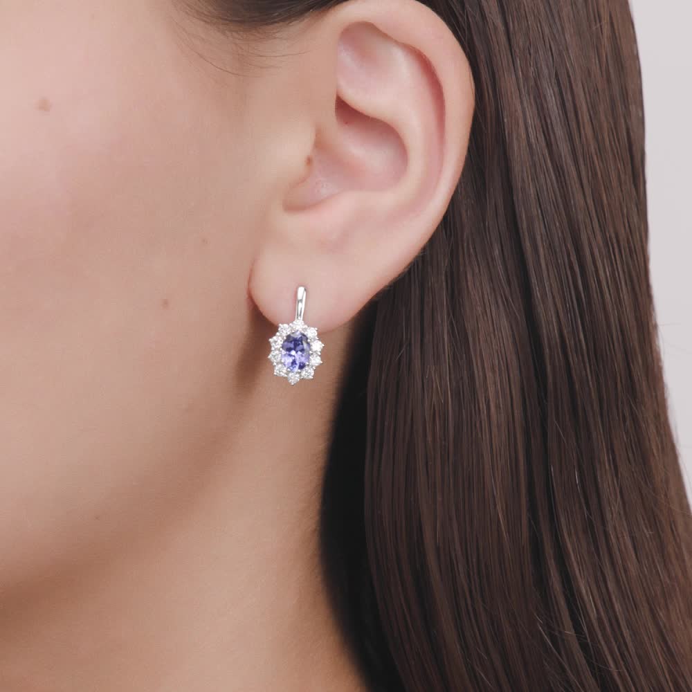 Красивые необыкновенно, танзанит нежно- сиреневый с фиолетовым оттенком в прекрасном бриллиантовом обрамлении