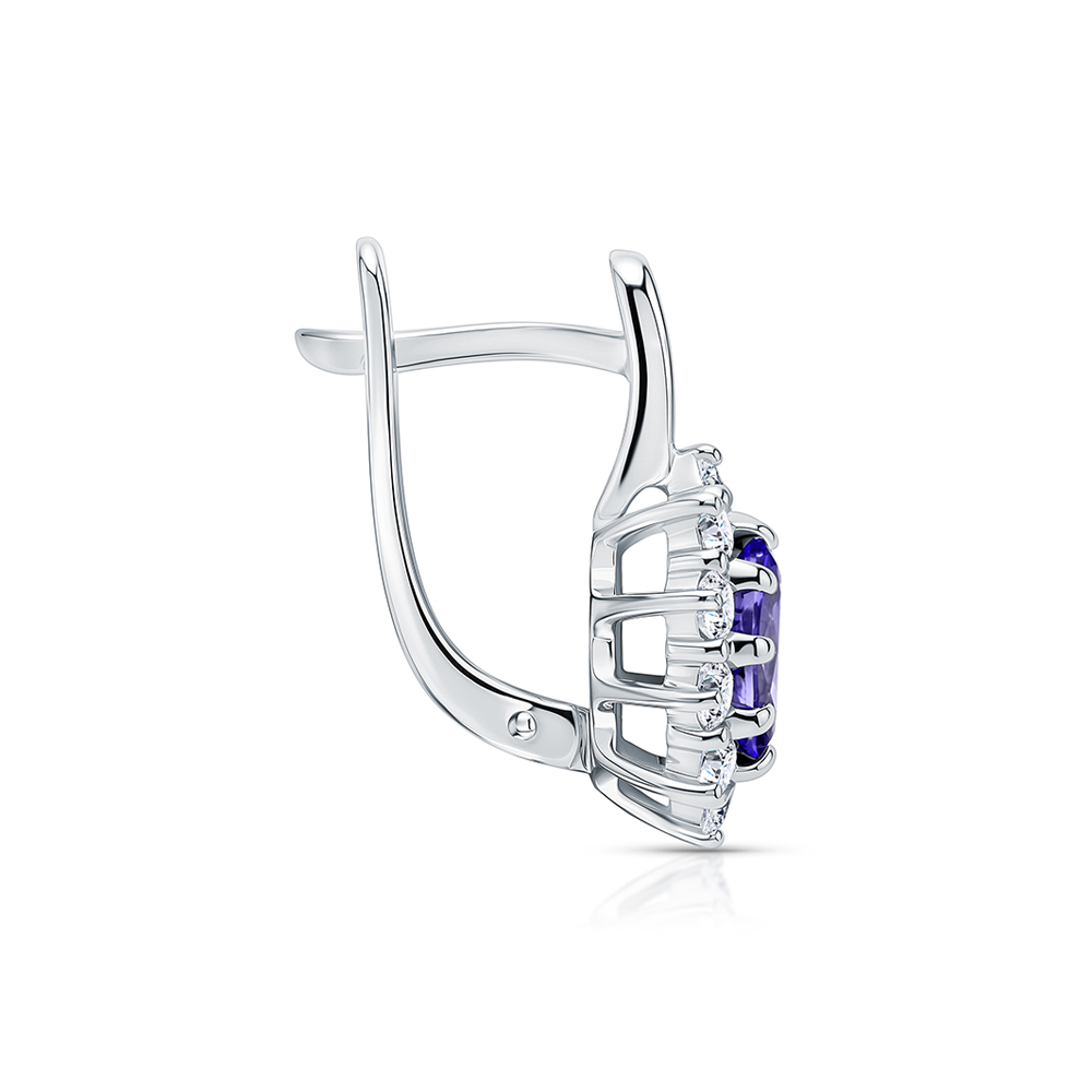 Золотые серьги с бриллиантами природными и танзанитами природными
