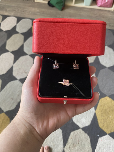 Очень красивый комплект, камень алпанит розовый, советую к покупке