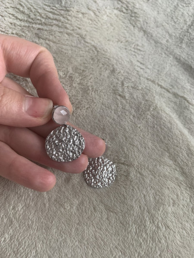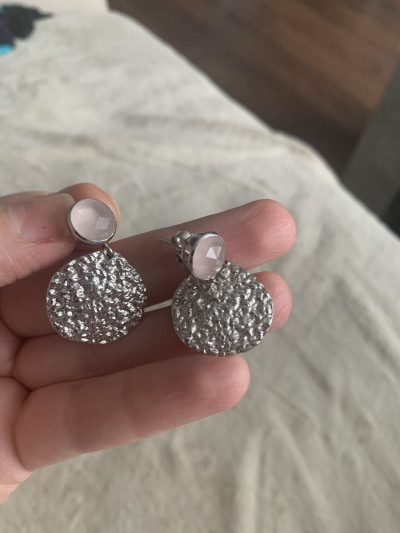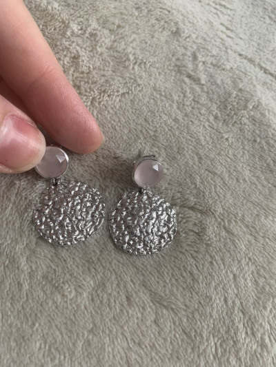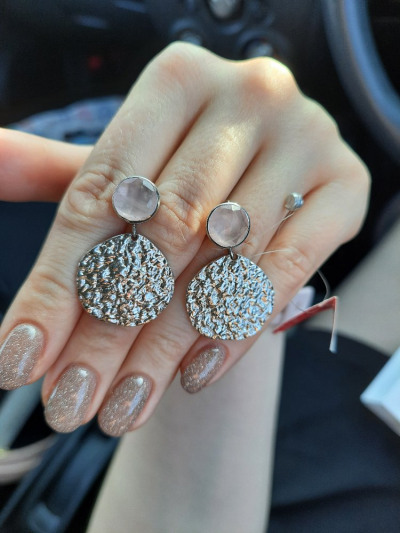 Заказала их через интернет, а когда примерила в магазине, сразу поняла: то, что нужно для летних легких образов. Серьги среднего размера, не тяжелые. Купила в комплект к подаренным мужем и невесткой браслетам с розовым кварцем.жаль, что фото не передает реальный цвет камней. Они нежно-розовые.