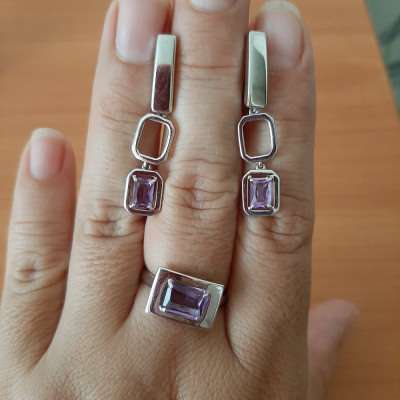Серебряные серьги с аметистами природными