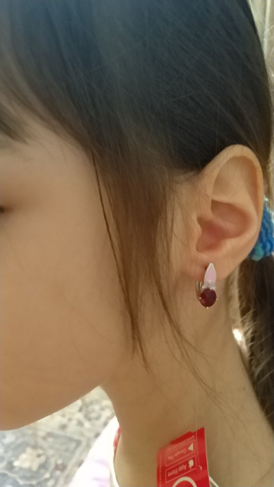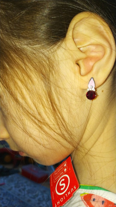 Очень красивые, камень сверкает, а так же есть 3 маленьких фианитика. Серьги подошли по размеру и мне и дочке. На фото нам 5 лет и серьги после тонкой петельки, которая у нас туго сидела, еле влезло, но запихнуть можно :), они достаточно тонкие. Сама часть, ктороя входит в ушко 1мм, высота серьги 18мм. Обычной линейкой измеряла)
