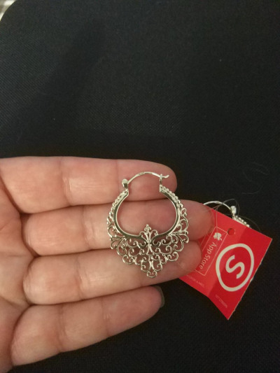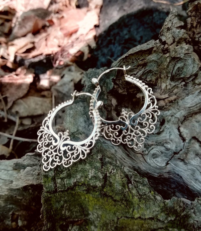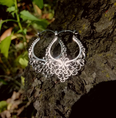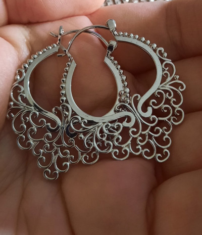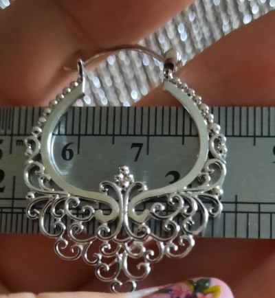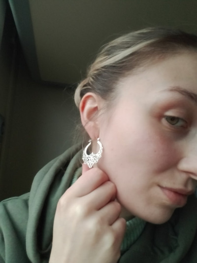 Серьги ну очень красивые. Такие растительные узоры. Рисунок с обеих сторон одинаковый. Покупала в подарок, надеюсь понравятся.