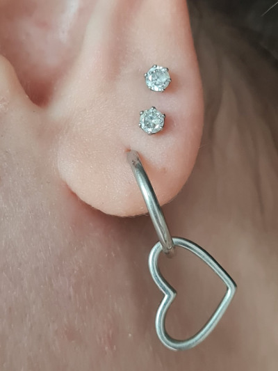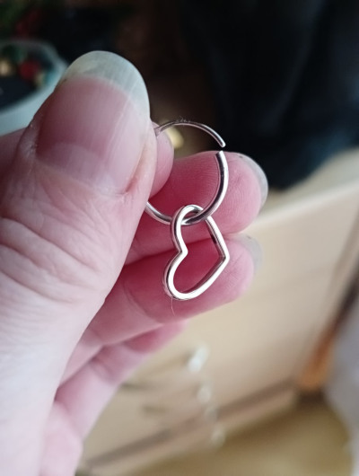 При желании можно с одной стороны иди с обеих снять сердечко, оно не прикреплено. Неудобная застёжка, сама не смогла, пришлось просить подругу. Есои серёжка растегнется, а вы не заметите, то сердечко пропадёт бесследно