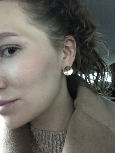 Серьги эффектные, не тяжёлые, 1,5 см в диаметре. Единственное, замок не винтовой, а как защелка. Проходила в них сутки, на ухе держатся крепко.