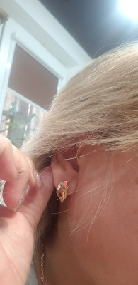 Сережки очень красивые. На ушах не чувствуются. Очень необычная форма.мне очень понравилась.