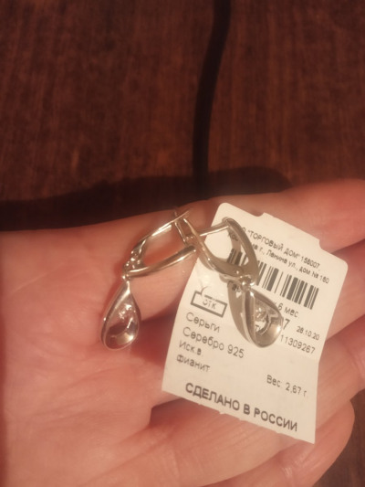 Серебряные серьги с фианитами, гладкие, обычные, фианит сверкает и лёгкие, красиво и мне понравилось