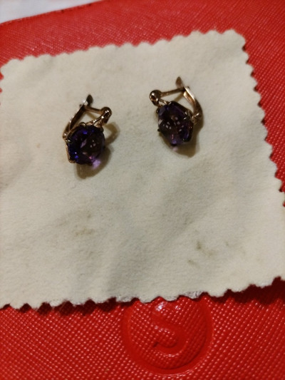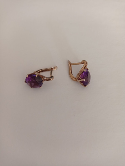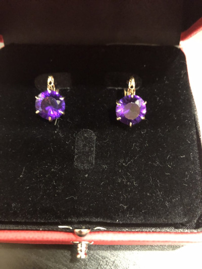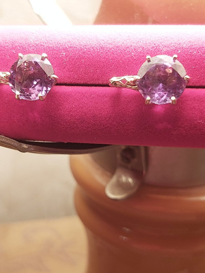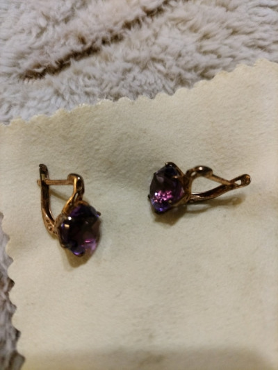 Очень красивые, яркие серьги. Люблю аметисты, вечером при освещении они более темные, густые. Днем немного посветлее, но все равно цвет насыщенный, привлекательный.
