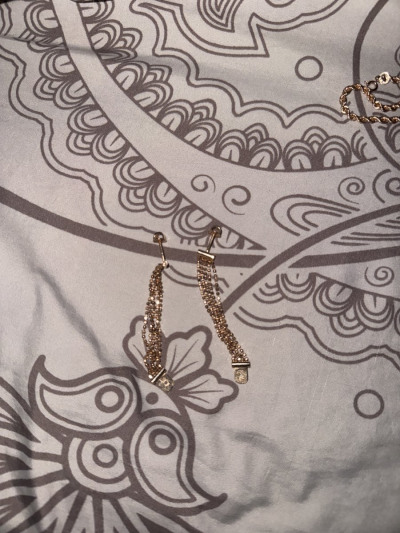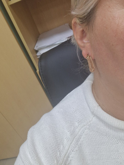 Серьги купила к кольцу и браслету.Собираю комплект! На ушах почти не ощущаются.Сама не смогла завернуть левую серьгу неудобно.Смотрятся невероятно красиво!