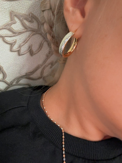С удовольствием относила все лето. Оптимальный размер. Замочек крепкий. Очень удобно сочетание двух цветов в изделии. Качество позолоты хорошее.