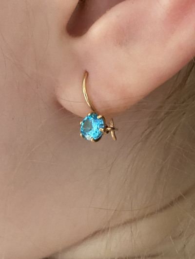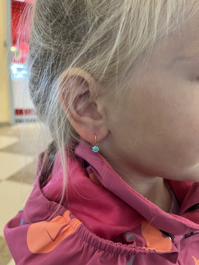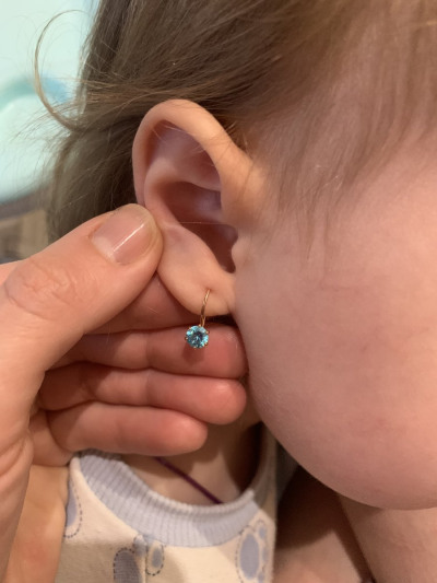 Очень красивые сережки, камушек насыщенный и очень красиво играет на свету. Брала дочке 1,5 года немного великоваты на ушке, но это мелочь. Форма позволяет такие носить. Легкие.