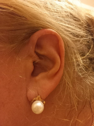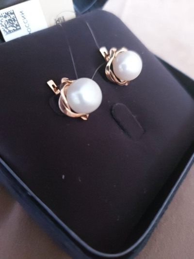Серьги очень впечатляющие, заметные, с крупным эффектным жемчугом. Такие часто вижу на членах королевской семьи. В сравнении с другими жемчужными серьгами в золоте именно эти выиграли. Немного отвисает мочка, но от этого серьги не теряются и не пропадают. Замечательный подарок от мужа.