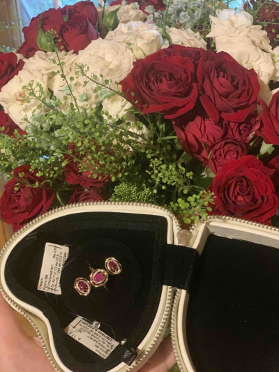 Замечательные серьги, ношу больше года. Рубины при разном освещении имеют разные оттенки от нежно малинового до насыщенного красного цвета. В носке очень удобны, легкие, но при этом заметные. Камень 0,5 карата.