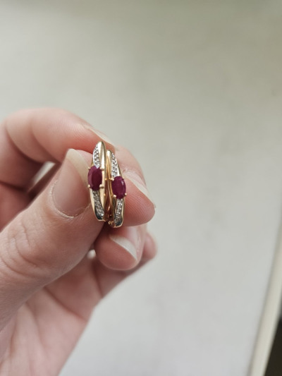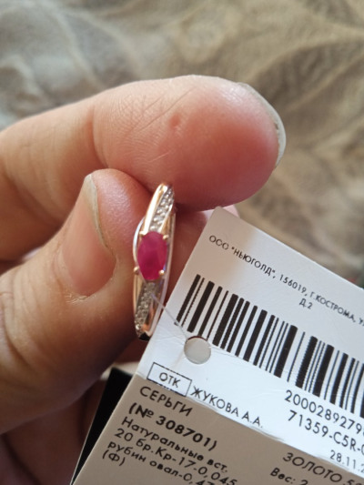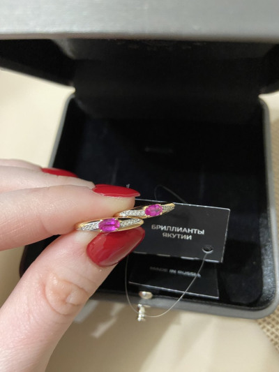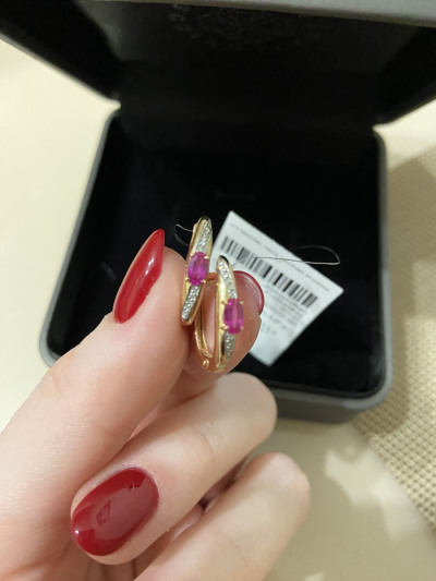 Серьги просто находка. Попались мне случайно, когда листала приложение и присматривалась к украшениям. Были единственные в городе! Заказ оформила, подтверждение пришло очень быстро, муж забрал их в магазине, спасибо консультанту за компетентность. Что же касается самого изделия, то серьги самые классические, что могут быть. Крупный рубин малиново-розового оттенка, не мутный, фото не передает его красоты. Очень хорошие характеристики камней, особенно греет душу, что рубин натуральный. Застёжка крепкая, закрываются серьги аж щелчком. Лаконичный дизайн без наворотов, всё сдержанно и минималистично, акцент на главный камень - рубин. У меня пухлые мочки ушей, серьги сели идеально, ничего нигде не давит, не впивается. Серьги имеют хороший вес 2,47г. В ушах очень приятно ощущаются, не оттягивая мочку. В общем, я безумно рада, что они достались мне) всегда мечтала о серьгах с рубинами и вот, мечта исполнилась) Сделаны в Костроме. А по цене с учетом всех скидок - просто песня! Спасибо Санлайту за такое чудо))
