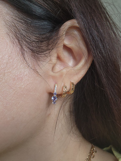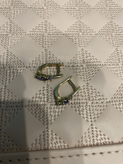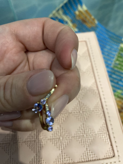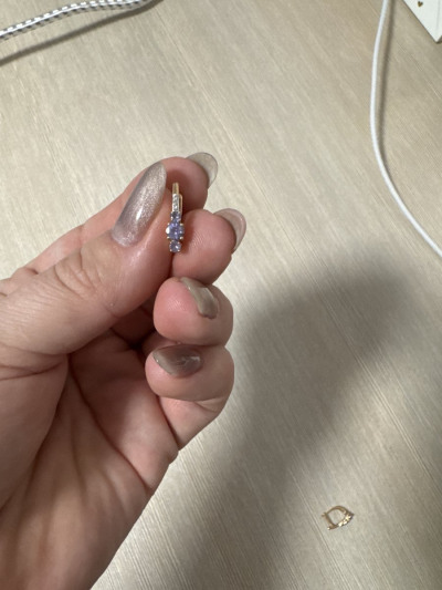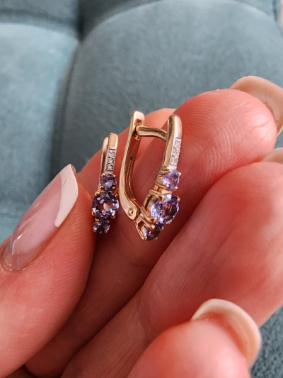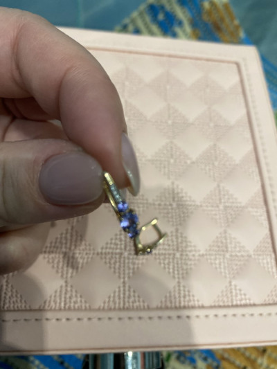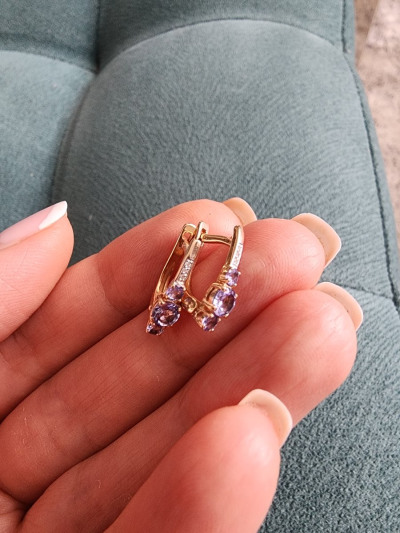 Маленькие, с 6 танзанитами и бриллиантовой крошкой. На тонкую мочку, на повседневную носку. Подойдёт для взрослых и детей. Милые, блестящие.