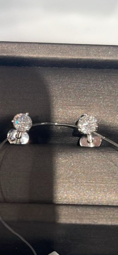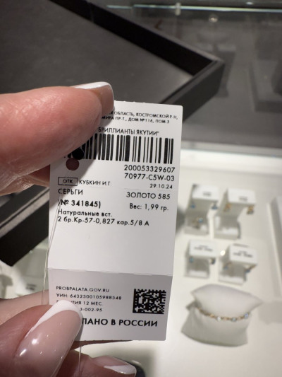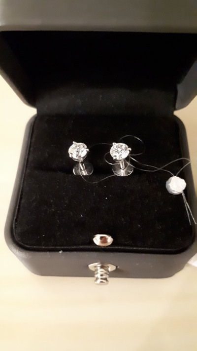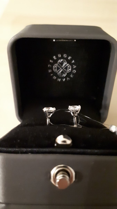 Прекрасные пусеты с бриллиантами. Выбрала именно эти среди многих других, с тремя лапками держащими камушек. Камушек, 0,808 карат (очень красиво блестит и переливается). Отдельное спасибо консультанту Дали, очень помогла.