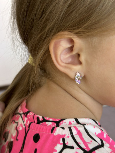 Ребенок доволен, стильные, удобные серьги. Качественная застежка и покрытие эмалью