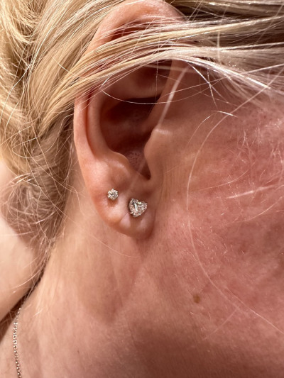 Серьги с 1 бриллиантом природным, 0.5 карат, огранка сердце 57 граней, цвет 2, чистота 6, тип огранки А;