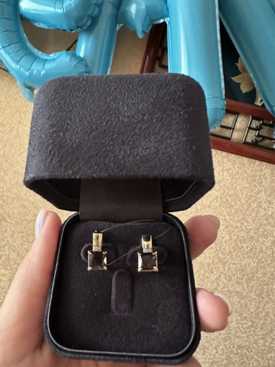 Очень красивые серьги с шоколадным дымчатым кварцем. Купила сразу комплект с кольцом.