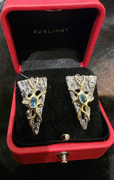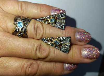 Огонь комплект, давно такой хотела, искрит я, играет топаз и все сверкает огоньками. Стильный, серьги не чувствуются в ушках, кольцо невесомое, хотя размеры хорошие