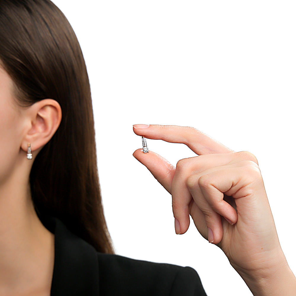 Серьги с 2 бриллиантами природными, 0.21 карат, огранка круг 57 граней, цвет 3, чистота 6, тип огранки А;