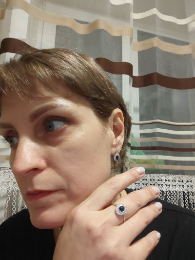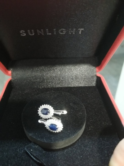 На юбилей купили комплект с натуральными сапфирами . Смотрится очень дорогой Спасибо Санлайт .
