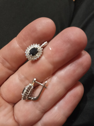 Очень изящные серёжки с натуральным сапфиром. Выглядят, как белое золото, сразу и не отличить. Они прекрасны!