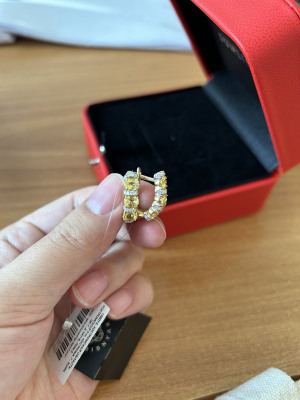 Я обожаю украшения с сапфирами. Но обычно это синие или темно-синие камни. Однако дополнять коллекцию очередными серьгами с синими сапфирами было бы безумием. Я решила рассмотреть вариант другой расцветки моих любимых камней. Эти серьги роскошны. Желтые сапфиры напоминают желтые бриллианты, которые мне совершенно не по карману. Данные серьги очень нарядные, яркие, бросаются в глаза. У меня были опасения относительно цвета металла. До этого у меня никогда не было изделий из желтого золота, исключительно красное золото. Но это не столь важно, если не учитывать факт, что у меня есть другие украшения в ушах помимо основных сережек. И сочетать украшения разного цвета металла на одном ухе было рискованно. Из-за этого я долго обдумывала покупку, сомневалась. Однако из-за обилия камней, сапфиров и бриллиантов цвет золото не определить взглядом со стороны. Ну а когда в магазин привезли серьги по моему заказу и я увидела насколько они чудесны в живую. Но все сомнения сразу отпали и выбор был очевиден. Сделаны качественно, застежка надежная, сами не громоздкие, не мешаются. Идеальны для яркого лета и солнечного настроения. Теперь обдумываю на счет кольца, очень уж нравятся мне эти волшебные камни.