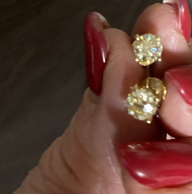 Серьги с 1 бриллиантом желтым, огранка круг 57 граней, 0.50 карат, цвет 8-5, чистота 8, тип огранки А;1 бриллиантом желтым, огранка круг 57 граней, 0.50 карат, цвет 8-5, чистота 8, тип огранки А; Желтое золото 585 пробы.