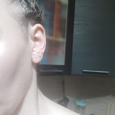 Сережки из желтого золота, хорошо подошли для второго прокола.