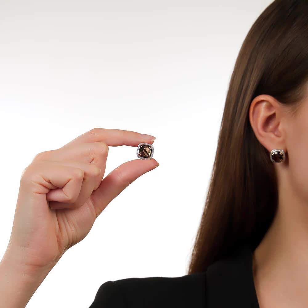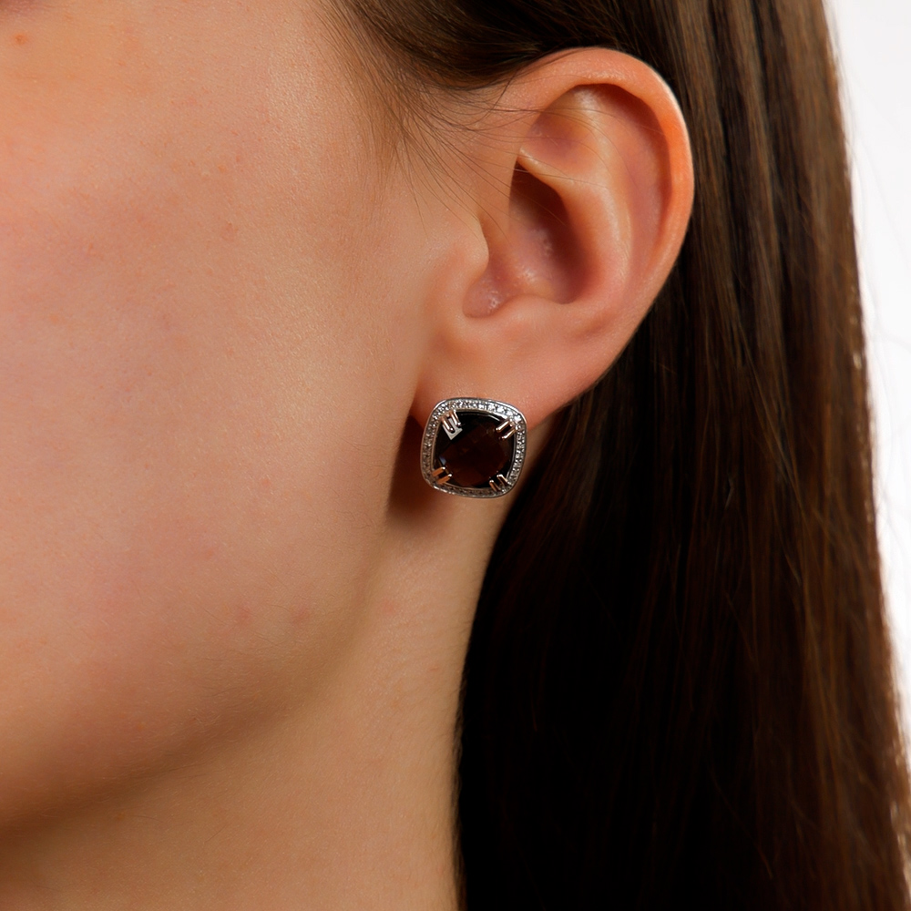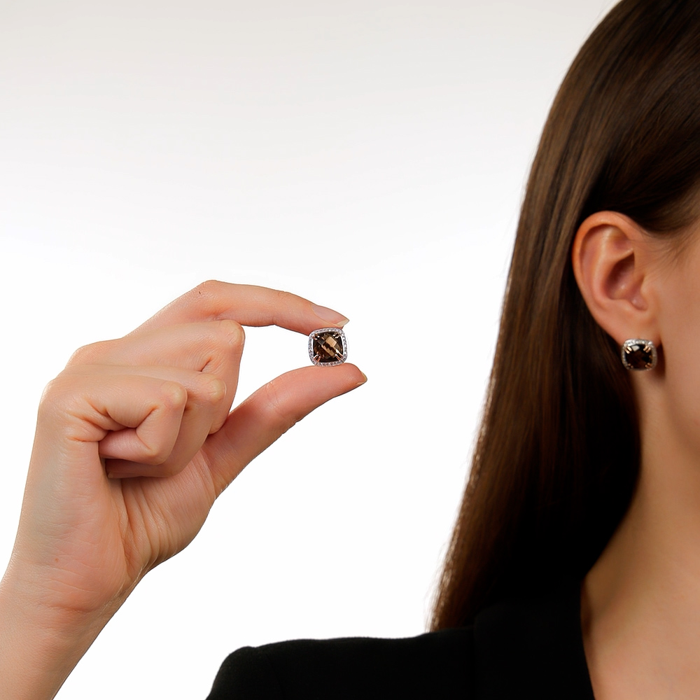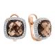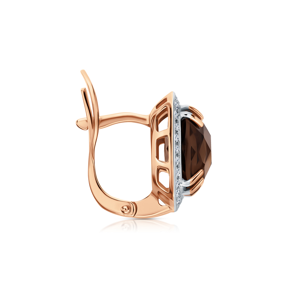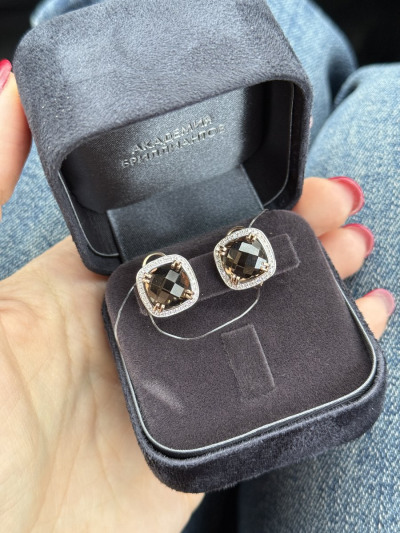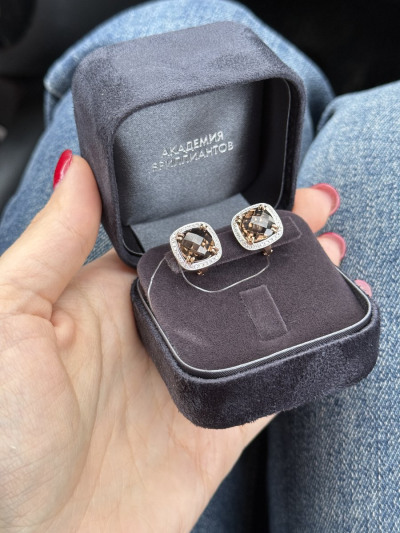 Золотые серьги с бриллиантами природными и кварцами дымчатыми природными