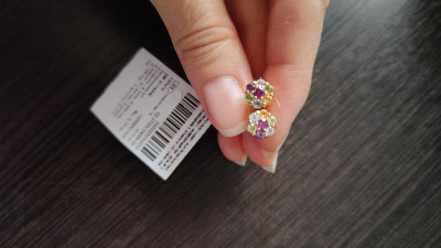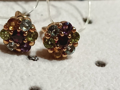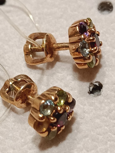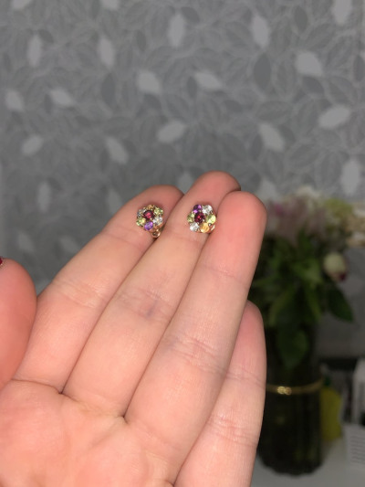 Очень красивые гвоздики с разноцветными камнями. Смотрятся потрямающе. Есть один небольшой минус - достаточно жесткая застежка. А в остальном - супер!
