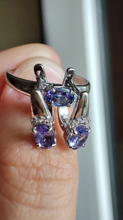 Серьги небольшие,но очень яркие красивые танзаниты.Теперь мои любимые.❤️❤️❤️