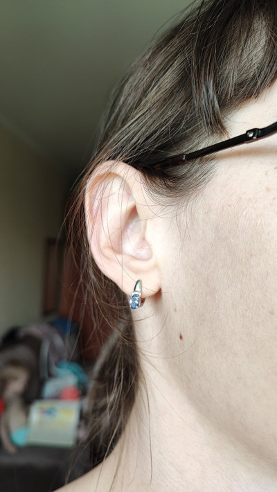 Серёжки лёгкие, будут хорошо сидеть на тонкой мочке. Камень небольшой, но и не маленький. Заметный. Оттенок, я бы сказала, васильковый. Привезите ещё во Владивосток, моя мама хочет себе такие:)