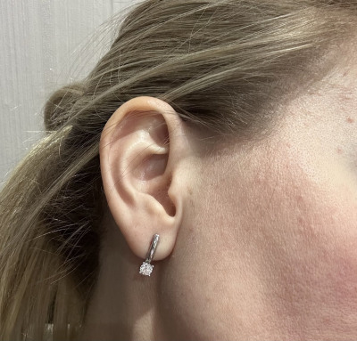 Серьги с 2 бриллиантами природными, 0.81 карат, огранка круг 57 граней, цвет 3, чистота 6, тип огранки А;