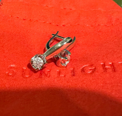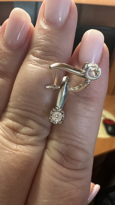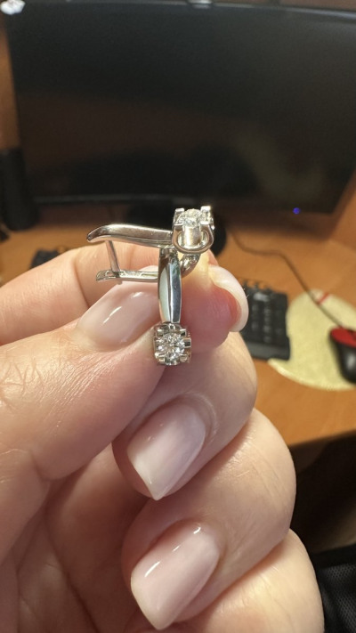 Серьги смотрятся презентабельно. Бриллианты, несмотря на небольшой размер, хорошо заметны, так как ярко играют и блестят.