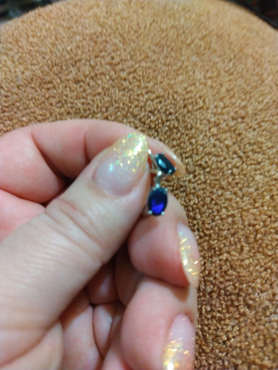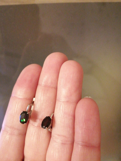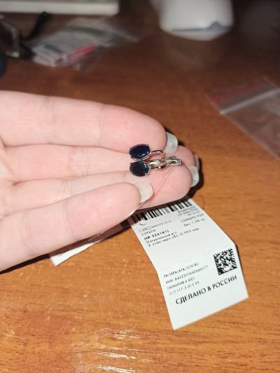 Очень понравились. Камни почти по полкарата каждый, при разном освещении и в зависимости от угла падения света то ярко-изумрудные, то индиго, красиво. Сами серьги небольшие, если мочка проколота высоко - то не подойдут.