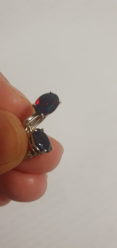 Открыла для себя этот безумно красивый камень. Выбрала красный камень, но переливается и синим, и зелёным, и чёрным. Шикарные!!! На маленькую и тонкую мочку сели идеально. Брала сразу с кольцом.