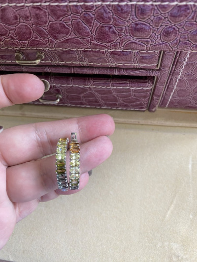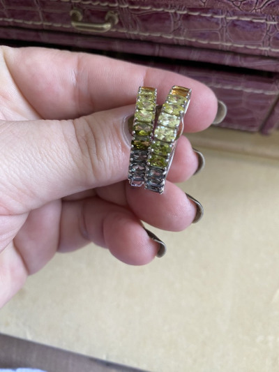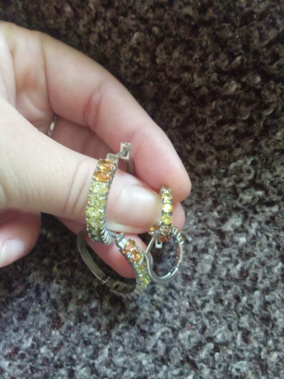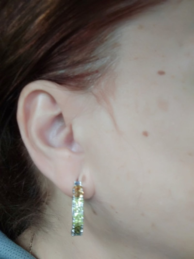 Серьги рекомендую к покупке. Качество на высоте, камни играют светом шикарно, даже в темноте. Никогда не подумаешь, что фианиты, выглядит как турмалины, не отличить. Сидят на мочке очень удобно, прокол не видно. Красота да и только. Выглядит дорого, я очень довольна. Надеюсь что и носиться будут долго.