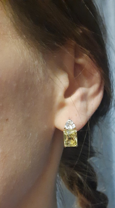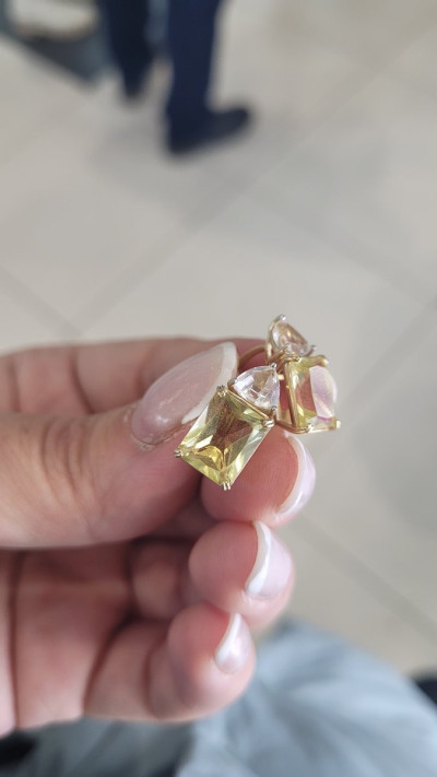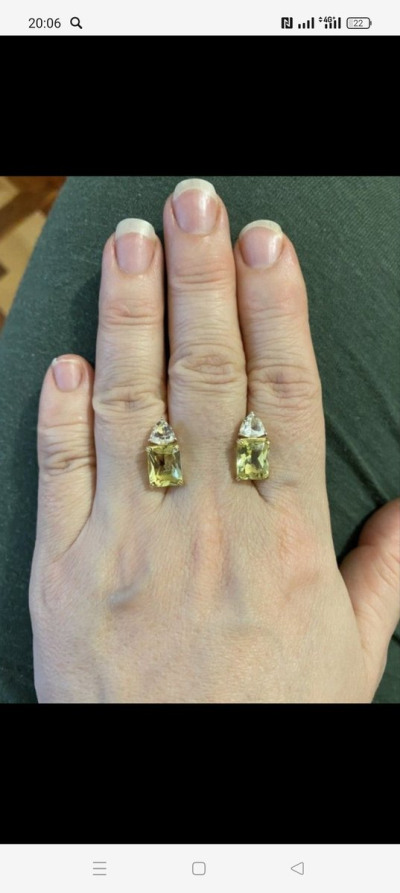 Добрый день. Увидела эти серьги и просто влюбилась в них. Цена кусалась, но потом пришли бонусы и вуаля они мне вышли в три раза дешевле первоначальной цены, за 4,5гр это сказка. Теперь общие впечатления, они не маленькие и очень заметные, камень не огромный, аккуратный около 1см в длину Нижний и 0.3 верхний. Цвет нежно лимонный. Подойдёт на толстую мочку, это важно, если она у вас тонкая как у меня и низкая то необходимо купить силиконовые застежки для гвоздиков и срезать их, чтобы они были толщиной какая вам необходимо, у меня 2мм и после этого они от веса не наклоняются вниз. Смотрятся шикарно, а главное что камень натуральный, идёт пожизненная гарантия. Берите обязательно, они прям сама женственность, смотрятся дорого и красиво.