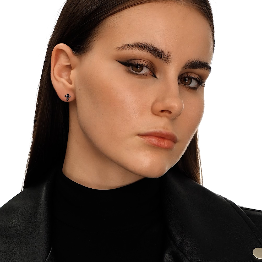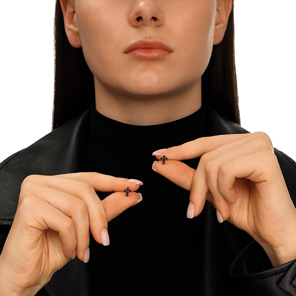 Серьги, вставка: черным фианитом;