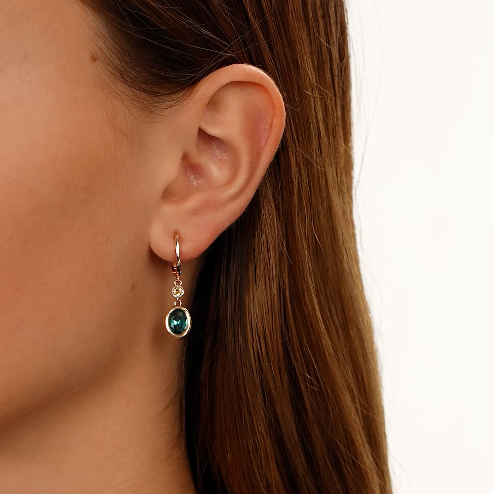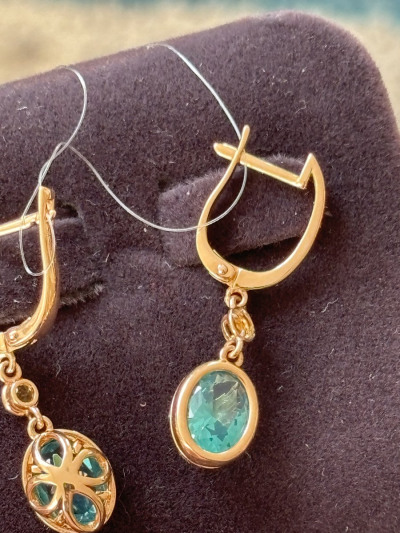 Золотые серьги с цитринами природными и наноситалами турмалин параиба