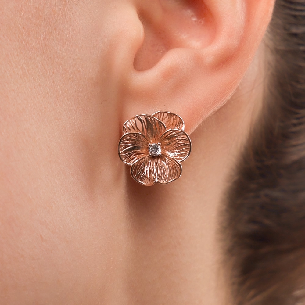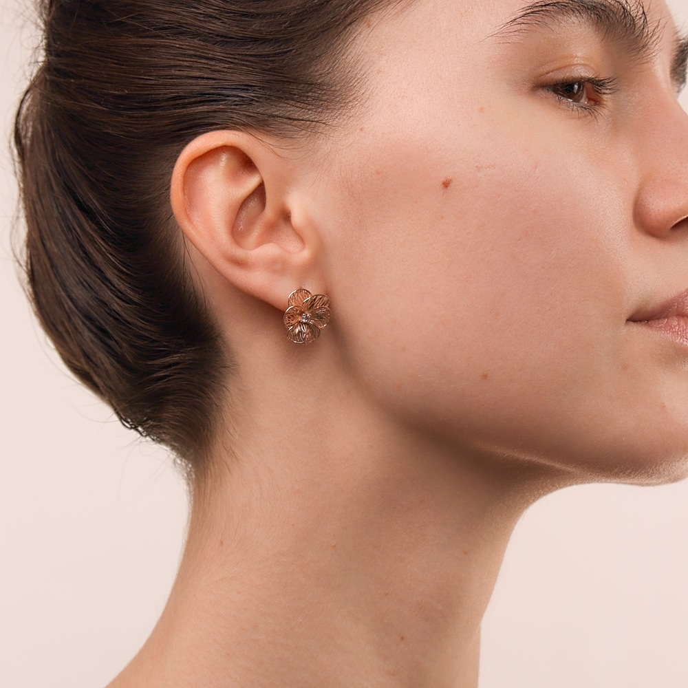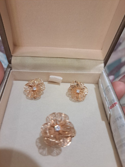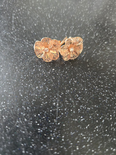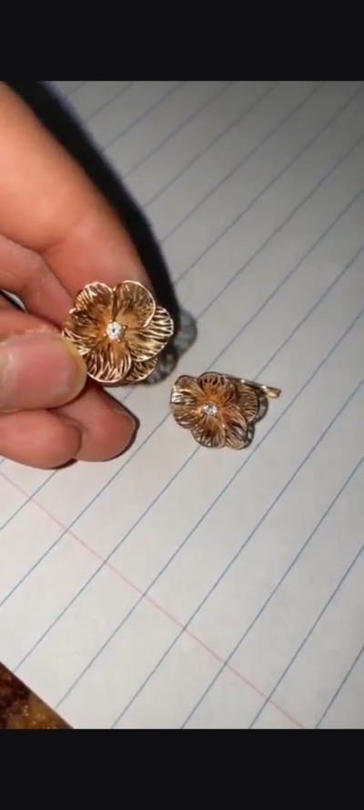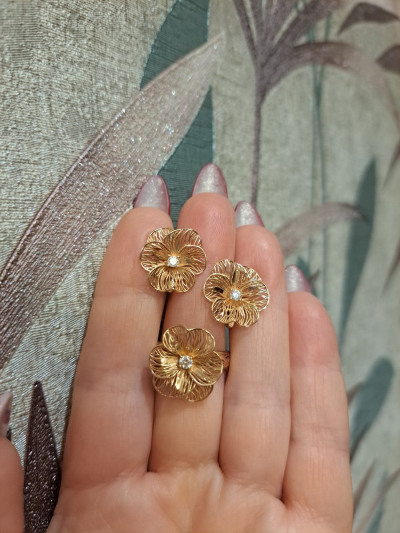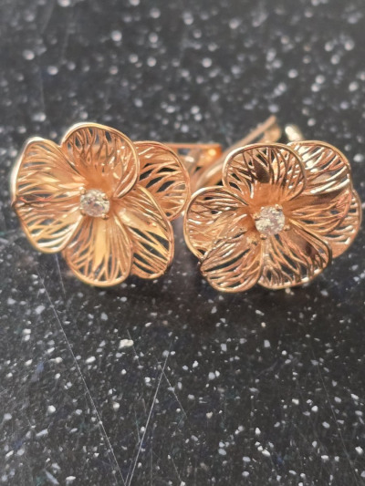 Золотые цветочки выполнены в 3-д проекции, выглядят объёмно и очень лёгкие для ушка. В носке практически не чувствуется веса, смотрятся очень красиво и призинтабельно