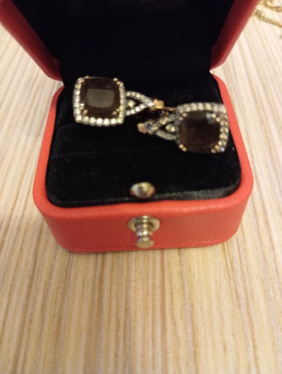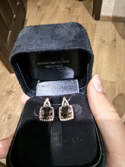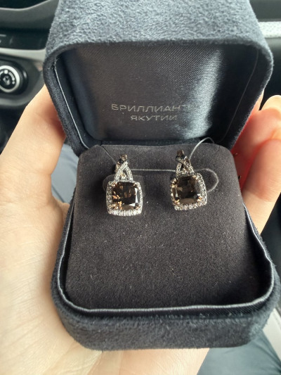 Золотые серьги с кварцами дымчатыми и бриллиантами