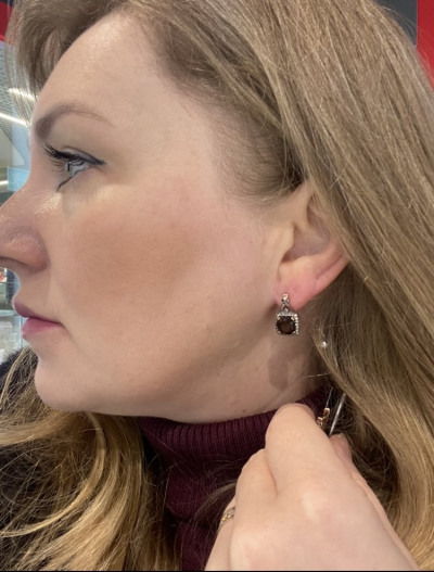 Серьги достаточно тяжёлые, мочку уха не оттягивают, прекрасно сверкают как на солнце, так и при искусственном освещении.